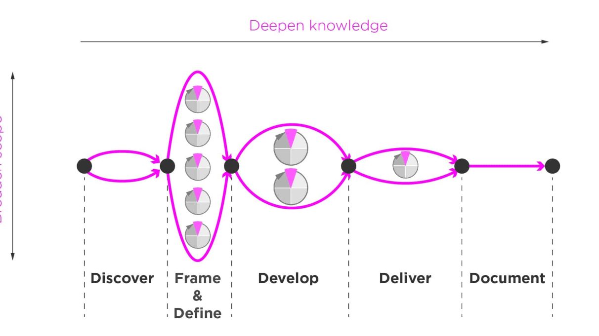 Binnen het lab werken wij met Design Thinking waarbij studenten werken in climbs, waarbij zij verschillende processtappen doorlopen en letterlijk omhoog klimmen. Na iedere climb presenteren onze studenten tijdens de jamsessie wat zij ontworpen hebben aan verschillende netwerkpartners. Feedback van partners is hierbij zeer waardevol!