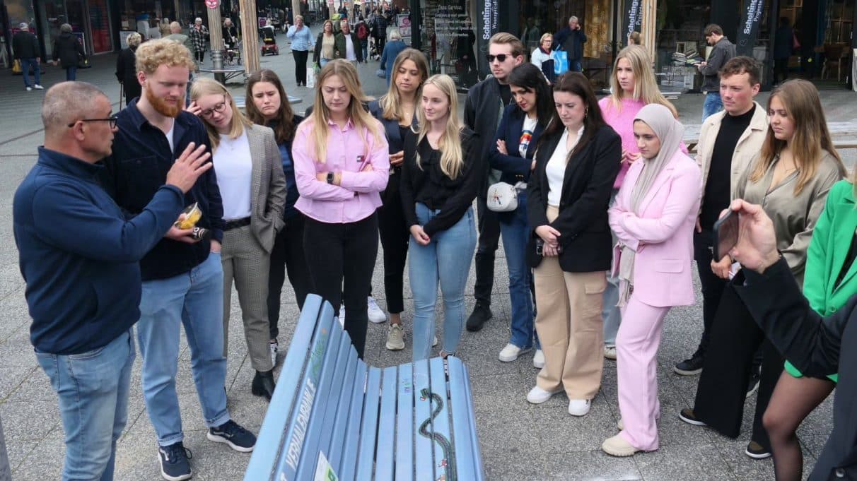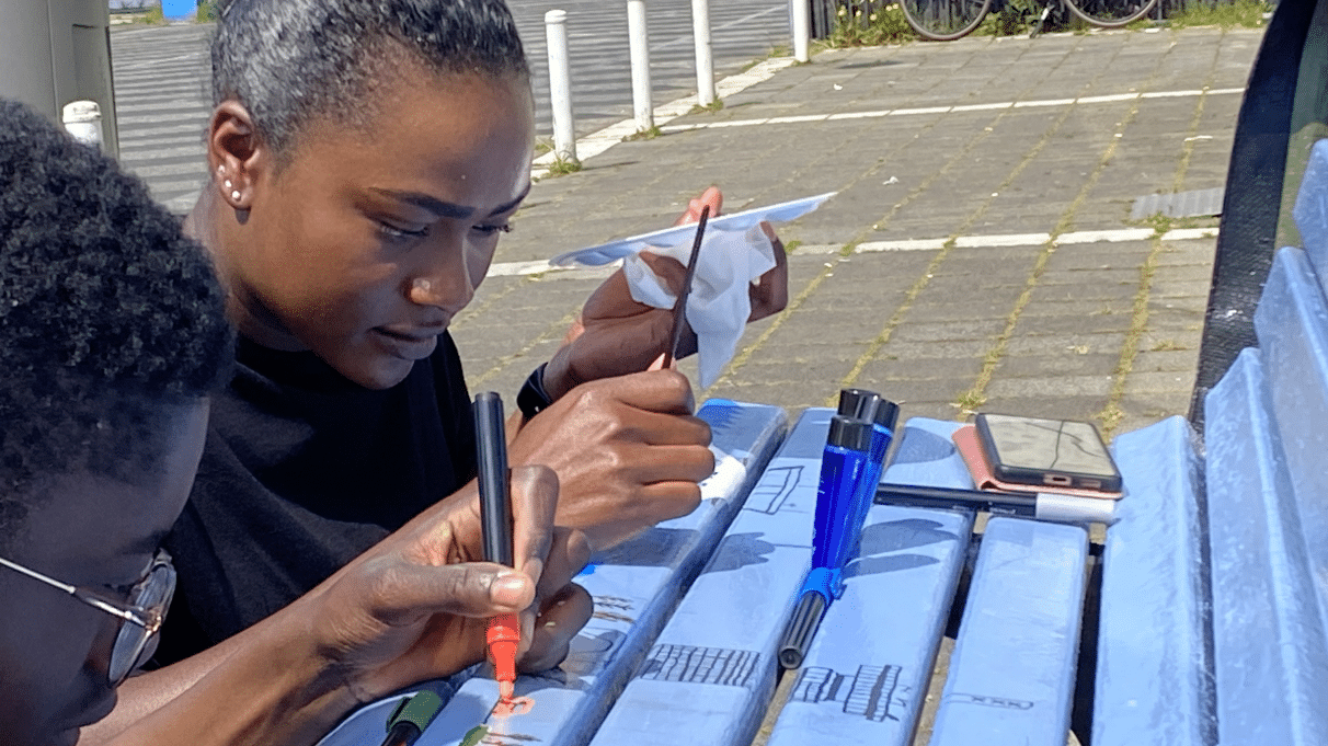 “Voor mijn afstudeerproject moest ik een product bedenken waarbij kunst en cultuur centraal staan en iets dat meteen een toevoegde waarde heeft voor Amsterdam-Noord. En dan vooral voor bewoners en ondernemers. Na veel ideeën en overleg met mijn medestudenten, zijn we uitgekomen op het verhalenbankje. Dit was het simpelste idee dat erbij zat, terwijl we toch zo’n twintig ideeën hadden”, zegt Andromeda vrolijk als we haar spreken op het Buikslotermeerplein, de plek waar het bankje straks moet komen te staan.