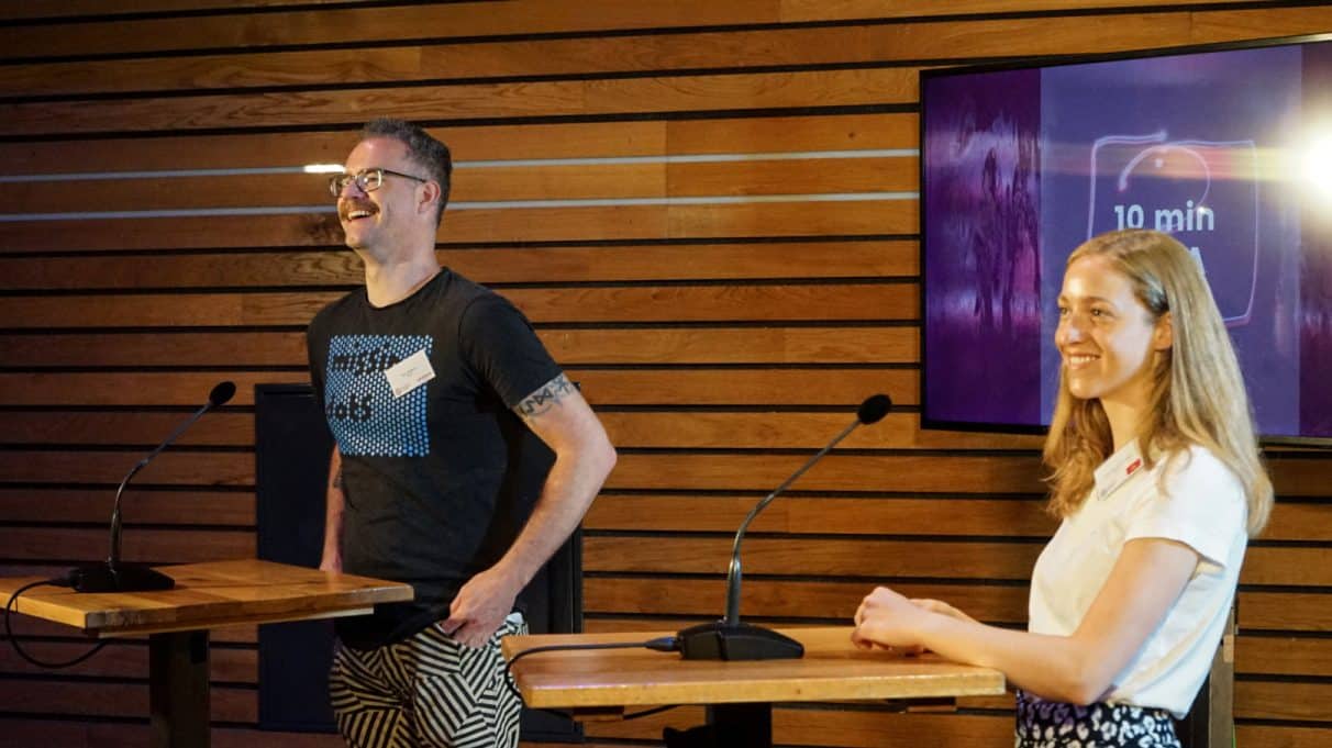Elk team krijgt tien minuten podiumtijd voor het pitchen van hun concept, inclusief het prototype dat ze erbij gemaakt hebben en een ruwe begroting – zodat geïnteresseerden ook weten wat voor investering er van ze gevraagd wordt. Nu komt het erop aan: ze zullen de werkveldpartners over de streep moeten trekken om de plannen een concrete stap verder te brengen.